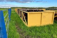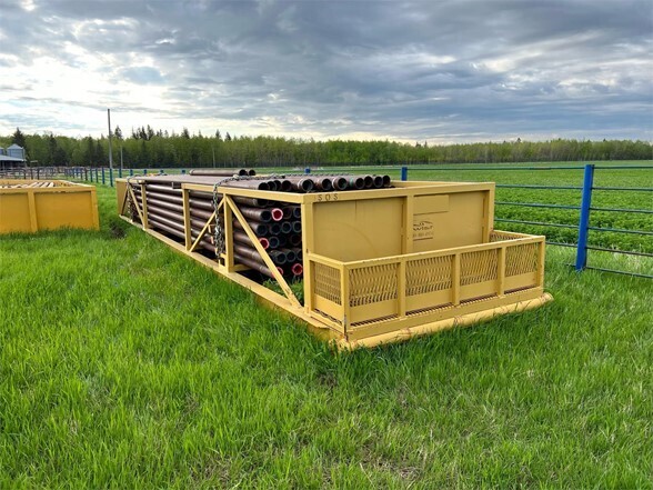 (2 of 6 available)Skidded 37’ Pipe Tub (Pipe is SOLD)  Inside tub dimensions 37’Lx81”Wx37”D  Almost new condition, used very rarely.  Storage basket on end.  *Note, All pipe is SOLD  We have 6 of these tubs for sale