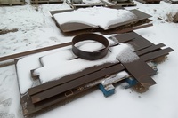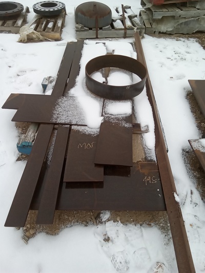 Only marking found was on 4' x 8' sheet and material grade is SA-516-70 MT. Located in storage yard.