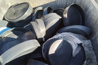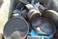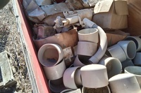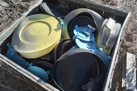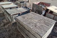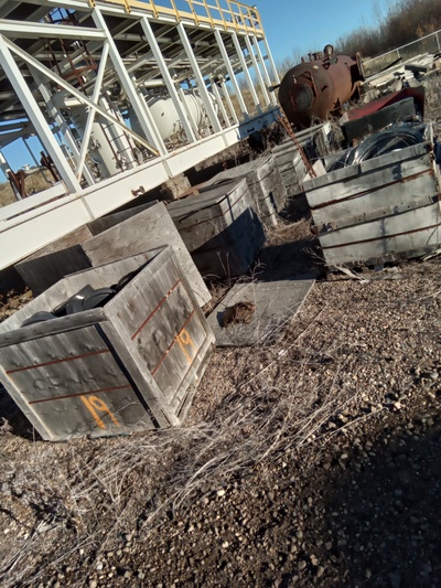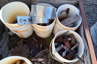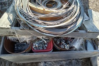 Miscellaneous crates with pipe caps, gaskets, cable, rusted valves, conduit material, hardware. 3 crates were screwed shut with no access