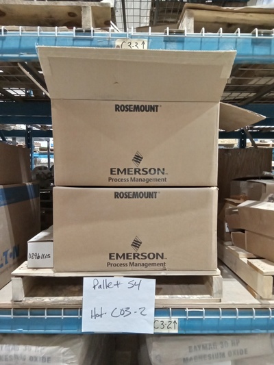 (3) transmitters and (4) 2 way PGI valves on pallet #54 located in heated storage building. See spreadsheet with details.