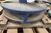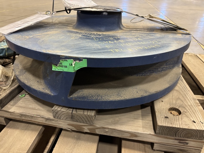 This GIW impeller is unused and never installed, originally purchased as a spare and held in long‑term storage since 2015. The impeller retains factory coating with no hydraulic wear, erosion, or service exposure. Minor cosmetic surface oxidation and dusting are visible, consistent with extended warehouse storage. No cracking, impact damage, or deformation observed.